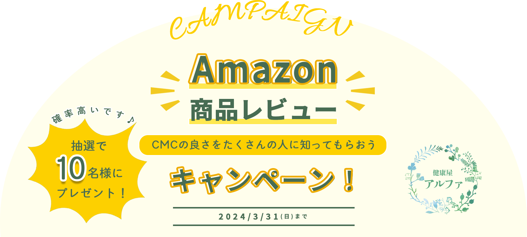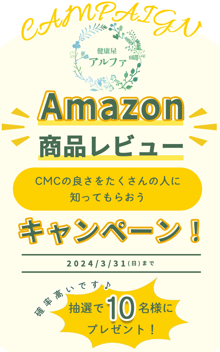 Amazon「健康屋アルファ」にてCMC商品をご購入されて、商品レビューを投稿していただける方。